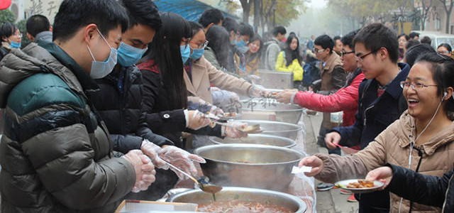 该校管理学院物流1501班的周慧敏,中午从图书馆自习完,就匆匆地赶去食堂。“几天前,QQ和朋友圈就被鱼肉福利刷屏了,学校湖里养的生态鱼啊,还不要钱!昨天晚上我领到票高兴死了。”她笑着举起手中满满一盘红烧鱼块。该校物业服务中心主任明兴旺介绍,今年元月,学校在沁湖投进了1万斤鱼苗,前几天他们捕获了鱼,将5000斤送给学校食堂烹饪给学生免费品尝。鱼肉比较多,所以,本周末的中餐和晚餐,食堂门口都能领到“鱼肉福利”。