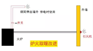 解决前两个问题,可以采用引风机,将烟筒放低加长,然后使用引风机将煤烟吸走;据我们试验,一台小的排风扇经过改造,可以吸走20米长烟筒的烟,如果封闭严实的话,还可以加长;烟筒在低位,取暖效果会好得多;排风速度快慢,可以调节快慢档解决。