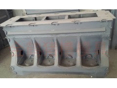 大四孔猪槽模具,自由采食槽模具,猪槽子模具,猪食槽模具,大猪料槽模具,是用于浇注水泥和沙子料槽的一体成型模具,外观光滑美观、质量可靠、细致加工、坚固耐用、稳定性好、省时省力。使用时自动下料,下料通畅,省料省力,清洁卫生,减少疾病传播,缩短饲养周期,降低饲养成本。自投放市场以来,得到了广大用户的认可。此模具浇注出的料槽可以全天侯食,有利于猪生长均匀,而且节省饲料,每头猪可节省饲料20-30斤,提前20-30天左右出栏,是现代养猪厂理想的更新换代产品。