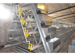 操作简单的刮板清粪机广泛用 于笼养和网床平养的家禽粪便的 清除。 设计合理的机体结构,使用方便, 安装方便,操作简单。 运行平稳,噪音低,粪便不易外 溢及残留。 牵引绳采用纤维编织绳,采用双驱 传动,不易跑空。 清粪板为热镀锌板,能够自动收 放,摩擦小,清粪干净。 一台主机可以运行1-3个清粪板, 粪板可根据粪沟宽度定做。 采用双轴承的角向轮,确保在运行过 程中不会倾斜,保障牵引绳的正常 运行。